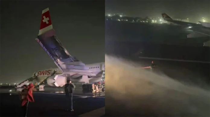 सूत्रों ने बताया कि स्विस एयर का विमान उड़ान भरने के लिए रनवे पर गति पकड़ रहा था, तभी इसके एक इंजन से असामान्य साउंड सुनाई दी और चंद मिनटों में उसमें आग की लपटें दिखीं। पायलट ने स्थिति की गंभीरता को भांप लिया और उन्होंने तुरंत टेकआफ रोक दिया। इसके बाद घटना की सूचना एयर ट्रैफिक कंट्रोल को दी गई। दमकल विभाग और आपातकालीन सेवाएं तुरंत मौके पर पहुंचीं और कुछ ही देर में आग पर काबू पा लिया गया।