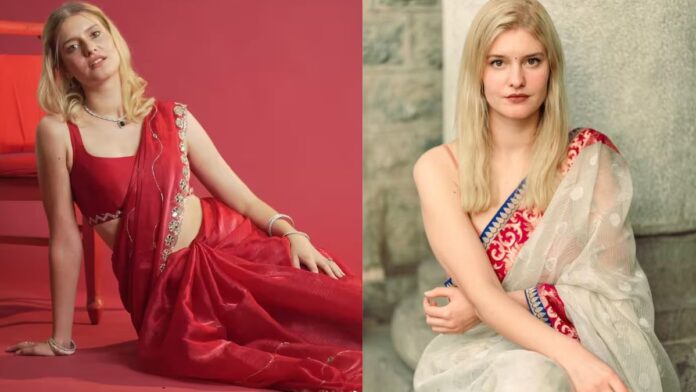 German Girl in Saree: एक बार फिर, सोशल मीडिया को अपना नया सेंसेशन मिल गया है। एक विदेशी लड़की की तस्वीरें सभी प्लेटफॉर्म पर वायरल हो रही हैं, और उसके ग्रेसफुल स्टाइल ने भारतीय यूज़र्स का दिल जीत लिया है।