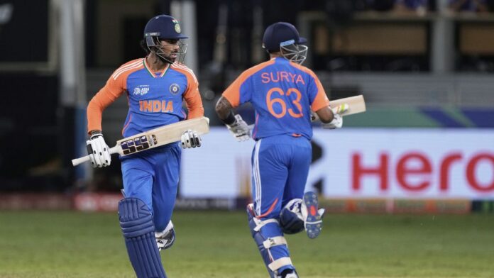 अभिषेक शर्मा, ईशान किशन (विकेटकीपर), तिलक वर्मा, सूर्यकुमार यादव (कप्तान), हार्दिक पांड्या, शिवम दुबे, रिंकू…