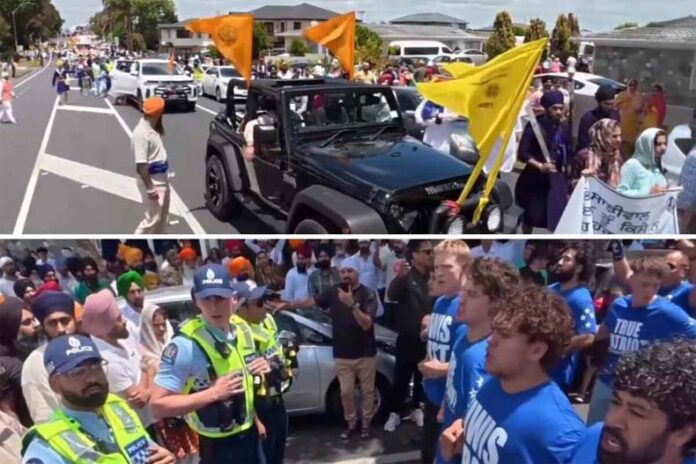 Sikh Nagar Kirtan, (द भारत ख़बर), नई दिल्ली: न्यूजीलैंड में एक बार फिर से सिख समुदाय की ओर से निकाले गए नगर कीर्तन का विरोध किया गया है।डेस्टिनी चर्च से जुड़े ब्रायन टमाकी के समूह ने सड़कों पर उतरकर हाका डांस किया। टमाकी और उनके समर्थकों ने नारे लगाए। उन्होंने कहा कि ये किसकी गलियां हैं, हमारी गलियां हैं।