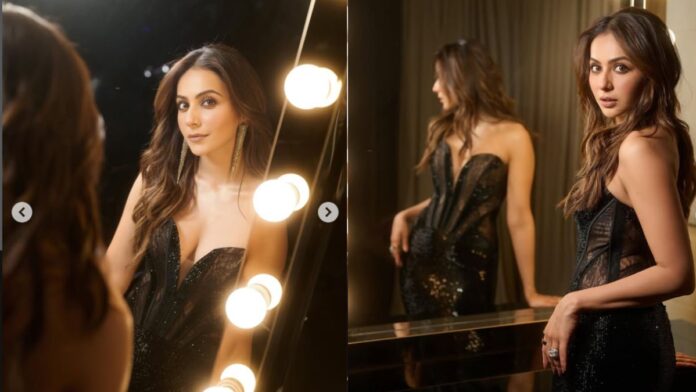 अपनी लेटेस्ट इंस्टाग्राम तस्वीरों में, रकुल एक स्लीक ब्लैक बॉडीकॉन ड्रेस पहने हुए दिख रही हैं, जो उनके शानदार फिगर को परफेक्टली हाईलाइट कर रही है। यह आउटफिट उन्हें एक बोल्ड लेकिन एलिगेंट लुक दे रहा है, जिससे वह आसानी से सबसे अलग दिख रही हैं।