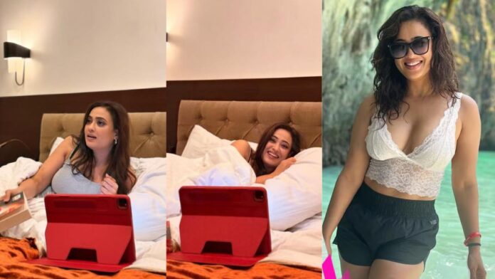तस्वीरों में, श्वेता तिवारी को इस पल का पूरा मज़ा लेते हुए देखा जा सकता है। उनके एक्सप्रेशन एक केयरफ्री मूड दिखाते हैं, जिससे यह साफ है कि वह शूट के दौरान मज़े कर रही थीं। हाथ में किताब, बिस्तर पर टैबलेट