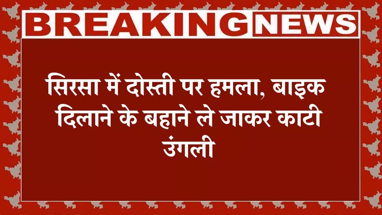 सिरसा: हरियाणा के सिरसा जिले में दोस्ती को शर्मसार करने वाली एक घटना सामने आई है, जहाँ एक युवक ने अपने ही दोस्त पर तेजधार हथियार ‘कापा’ से जानलेवा हमला कर दिया। आरोपी ने पीड़ित को बाइक दिलाने के बहाने साथ ले जाकर एक सुनसान जगह पर वारदात को अंजाम दिया। हमले में पीड़ित युवक के हाथ की एक उंगली कट गई और वह गंभीर रूप से घायल हो गया। पीड़ित की शिकायत पर सिटी थाना पुलिस ने आरोपी के खिलाफ मामला दर्ज कर जांच शुरू कर दी है।