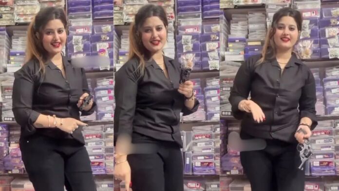 अंजलि शर्मा 2080 नाम के इंस्टाग्राम अकाउंट से पोस्ट की गई रील में लड़की एक दुकान के अंदर रिवॉल्वर पकड़े हुए दिख रही है। खबर है कि यह वीडियो कानपुर के किदवई नगर इलाके का है और सोशल मीडिया प्लेटफॉर्म पर तेज़ी से वायरल हो गया।