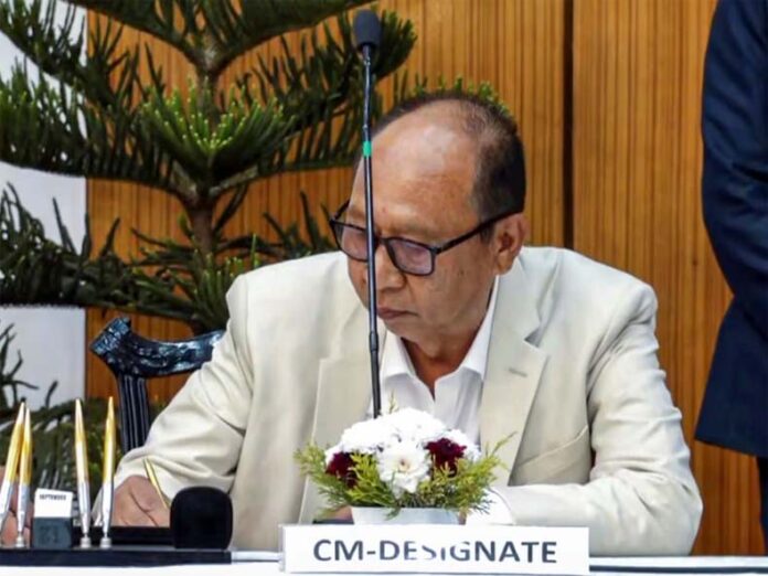 Yumnam Khemchand Oath Ceremony, (द भारत ख़बर), नई दिल्ली: भाजपा नेता युमनाम खेमचंद सिंह मणिपुर के मुख्यमंत्री बन गए है। आज शाम को राज्यपाल अजय कुमार भल्ला ने इम्फाल स्थित लोकभवन में खेमचंद को पद व गोपनीयता की शपथ दिलाई। खेमचंद मैतेई समुदाय से आते हैं। वह राज्य के 13वें मुख्यमंत्री बने है। वहीं नगा समुदाय से आने वाले लोधी दिखो ने डिप्टी सीएम की शपथ ली। वे नगा पीपुल्स फ्रंट के विधायक हैं। वहीं, कुकी समुदाय से आने वालीं नेमचा किपगेन राज्य की पहली डिप्टी सीएम बनीं। भाजपा नेता नेमचा ने दिल्ली के मणिपुर भवन से वीडियो कॉन्फ्रेंस के जरिए शपथ लीं।